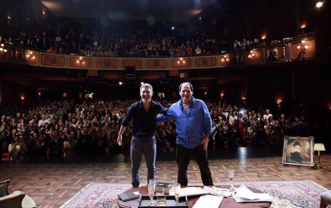 Por eso Suar logra la inteligente tarea, una vez más, de ponerse al lado de un maestro de actores y no salir a competirle. Y gana muchísimo, porque hace lo suyo perfecto, le da a su personaje una mezcla de ingenuidad y emoción; juega con la guiñada popular que tiene en esa complicidad con el público; y a su vez lo deja a Chávez hacer su entrada por un enorme escalera -la escenografía de Jorge Ferrari es majestuosa e íntima a la vez (hasta llueve en el escenario)- y desplegar su criatura a todo vapor. El personaje de Chávez pasa por el cinismo, la violencia verbal, la ironía y el desborde en dosis justas con ese talento en el que uno le cree todo.