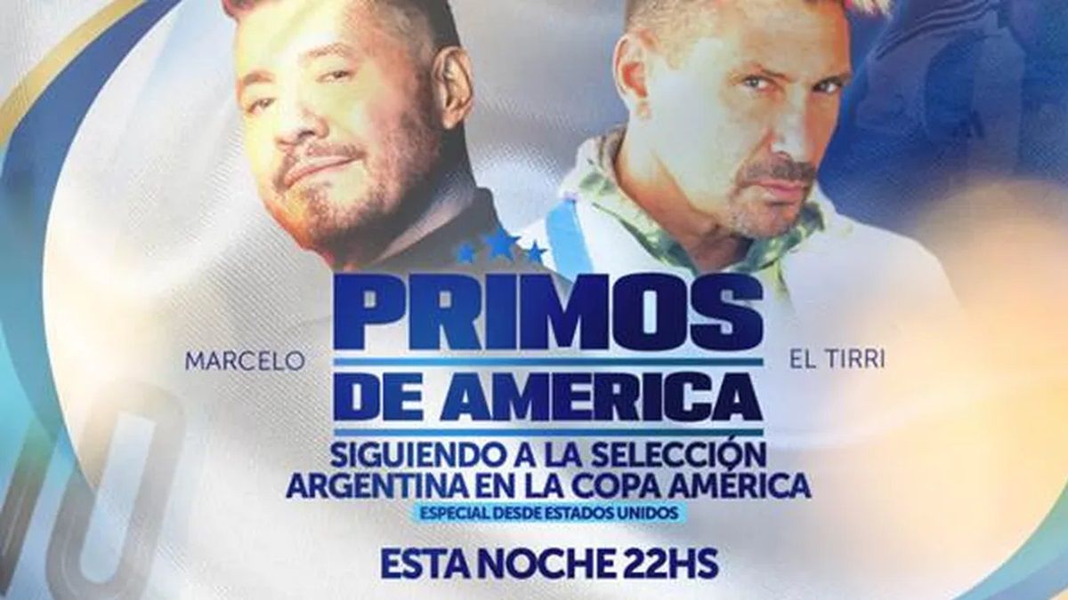 Marcelo Tinelli y El Tirri estrenaron este miércoles 19 de junio por la pantalla de América TV su nuevo programa, 'Primos de América', desde Estados Unidos, en donde cubrirán todo lo relacionado con la Copa América 2024, en donde la Selección Nacional busca convertirse en bicampeones.