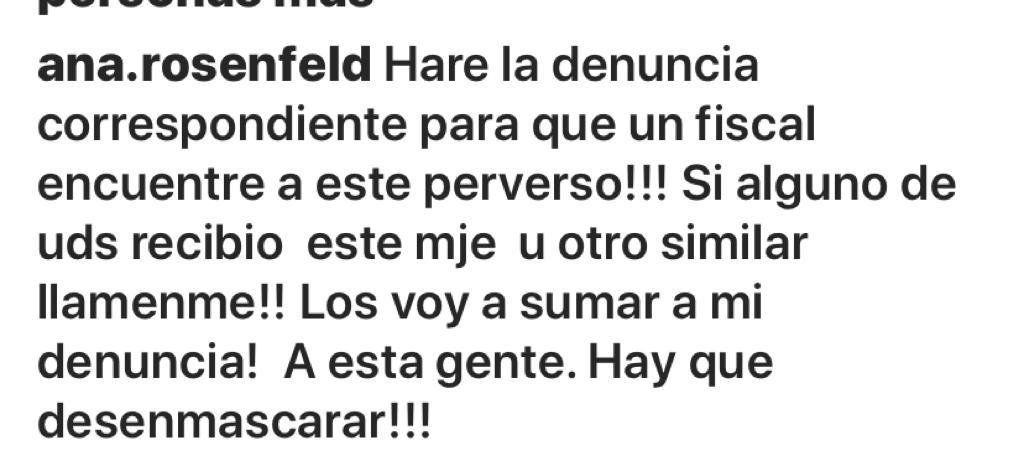 Ana Rosenfeld sufrió un cyber acoso de un hombre que le ofreció dinero a cambio de fotos desnuda, obviamente la abogada realizó la denuncia en una fiscalía cibercriminal.