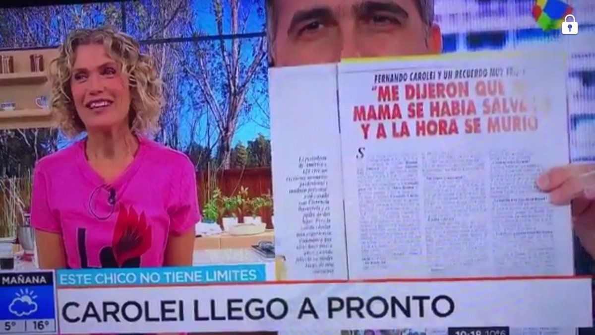 Laje pretendió hacer un comentario aparentemente divertido sobre la primera nota que le hicieron al periodista de América y A24. Entre risas, le preguntó a Maru: "¿Sabes cuál es el título de la nota de Carolei?", jugando con la expectativa pero como dando a entender que se trataba de una estupidez, un título menor o digno de una gastada al aire.