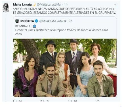 El regreso de Argentina, tierra de amor y venganza (ATAV), la exitosa novela de 2019, a la pantalla de eltrece revolucionó las redes sociales, convirtiendo la repetición de la tira en TT (trending topic) en Twitter ante los numerosos mensajes de felicidad y ocurrentes memes de sus fans.