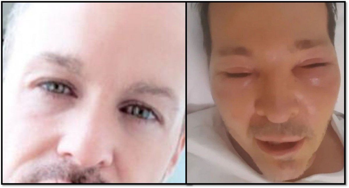 Este es el caso de Axel, quien hizo un extraño posteo en donde se lo ve muy mal; el cantante se tomó la foto después de varias horas de vuelo, y por ese motivo tiene la cara hinchada.