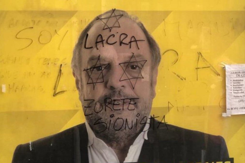 En afiches que promocionaban el programa del periodista Baby Etchecopar se encontraron dibujos y palabras en contra del periodista: "Lacra" y "Sionista"