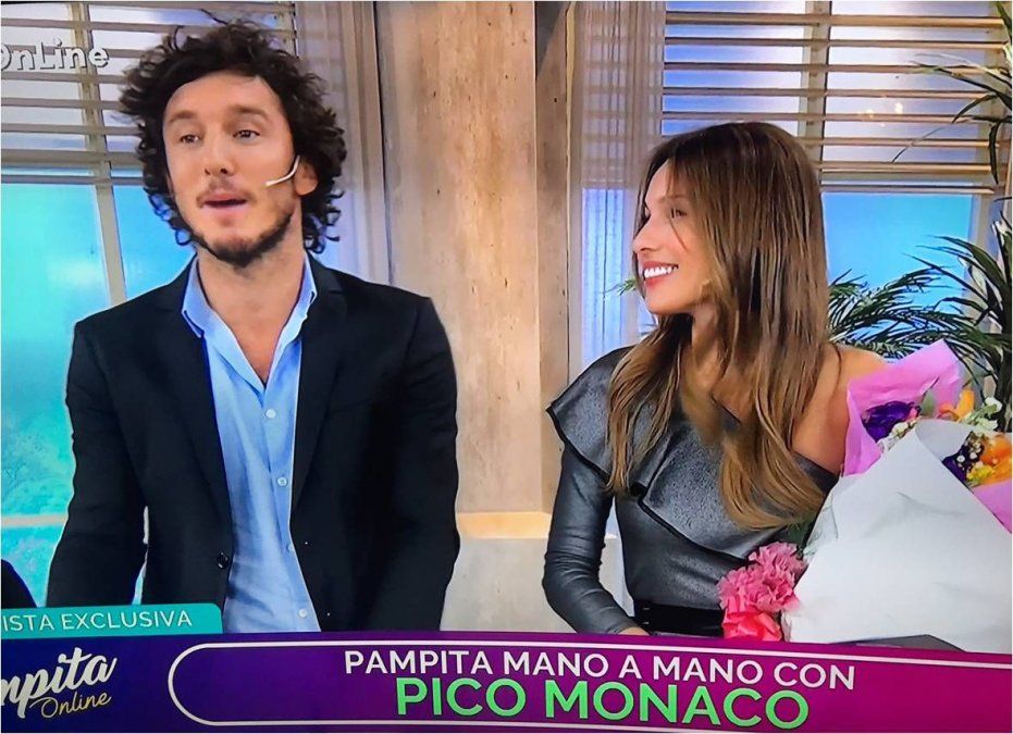 "Me acosó todo el fin de semana para que le adelante alguna pregunta", anticipó Pampita sobre su invitado/novio Pico Mónaco en el debut de Pampita on line por Telefe. La novela que antecede su programa le dejó un pico de rating delicioso: 12.2, con lo cual el pie derecho para el comienzo estaba asegurado.