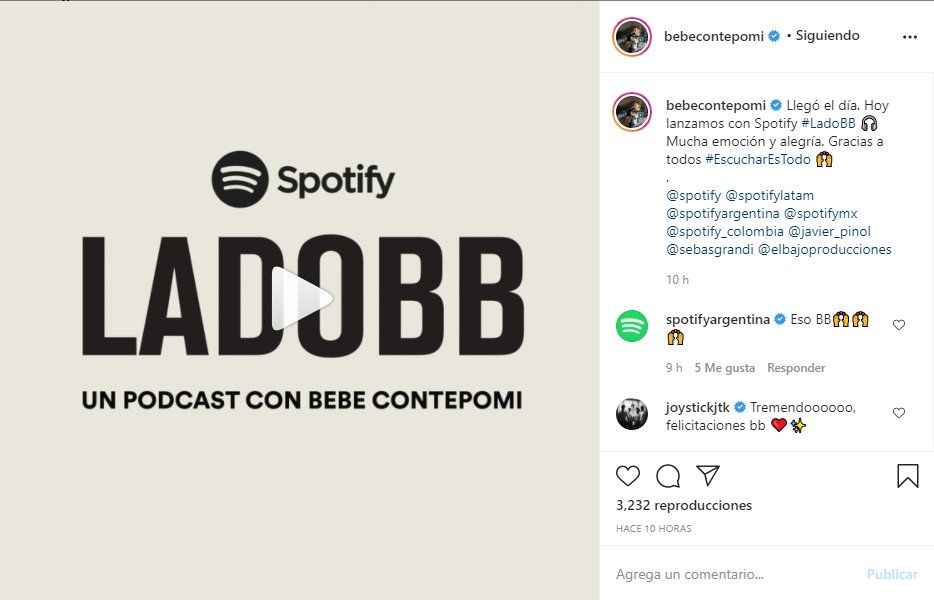 En estos tiempo pandemicos, Bebe Contepomi busca evocar la cercanía que brinda el audio, como contenido intimista.Al respecto comentó Bebe: "Estoy muy emocionado, como si fuese yo a sacar un disco", confesó Contepomi en la presentación virtual de su Podcast Lado BB, que tuvo como invitados a varios de los protagonistas de la primera temporada del podcast: Fito Paéz, Ricardo Mollo, Gustavo Santaolalla, Lali Espósito y Cucho Parisi.