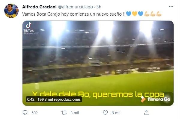 Poco antes de su muerte, el ex futbolista Alfredo Graciani "El Murciélago" tuiteó un mensaje alentando a Boca Juniors