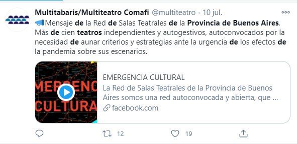 La actividad teatral y los shows musicales se habían suspendido en toda la Argentina el fin de semana anterior a la implementación de la cuarentena obligatoria dispuesta por el presidente Alberto Fernández, el 20 de marzo. La industria del espectáculo y los artistas -del mismo modo que ocurrió en otros rubros- ingresaron entonces en una crisis profunda.