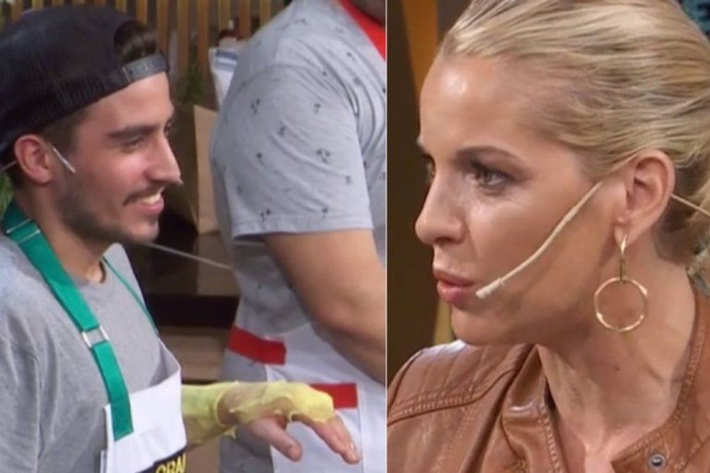 La conductora Carina Zampini de "El Gran Premio de la Cocina" se mostró preocupada cuando uno de los participantes se quemó mientras preparaba una sopa.