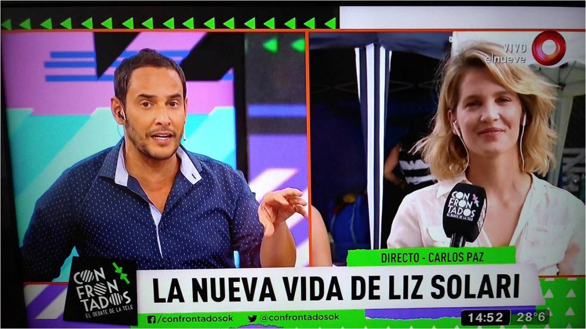 Liz Solari está en Carlos Paz, grabando para una serie, donde incursiona como actriz. En ese contexto, brindó un móvil para el programa Confrontados, que conducen Rodrigo Lussich y Carla Conte. "Estoy haciendo una miniserie, una coproducción argentino brasileña, va a salir en ambos países, es un policial, hay mucha acción, estoy muy contenta", dijo Liz.