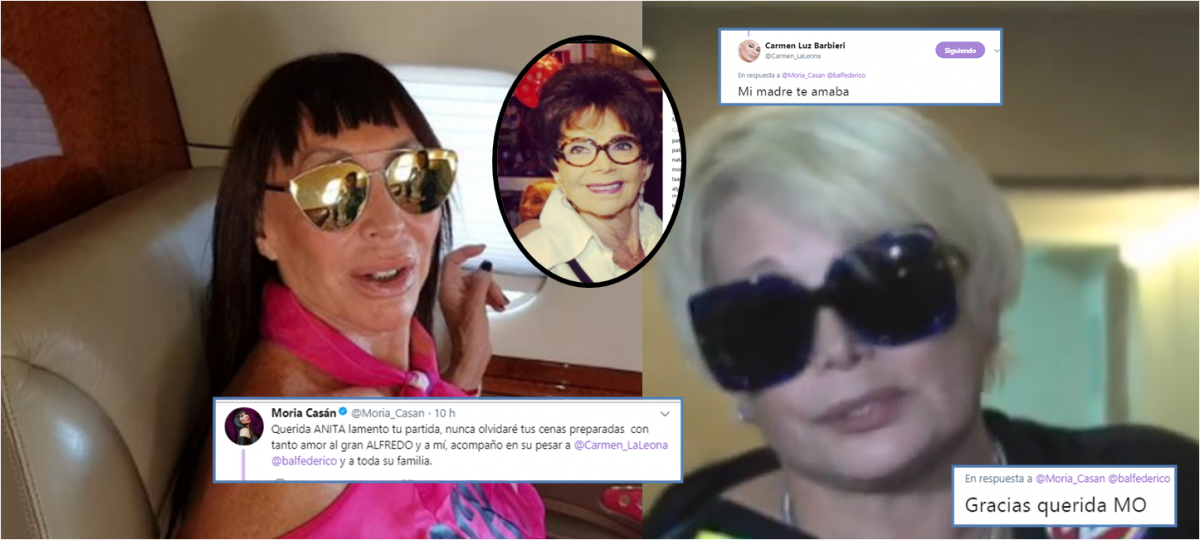 Pero fue Moria quien sorprendió con su saludo para Carmen y un lindo recuerdo para Anita. A pesar de las peleas y la distancia actual entre Carmen y ella, Moria decidió enviarle un saludo por las redes: "Querida ANITA lamento tu partida, nunca olvidaré tus cenas preparadas con tanto amor al gran ALFREDO y a mí, acompaño en su pesar a @Carmen_LaLeona @balfederico y a toda su familia"