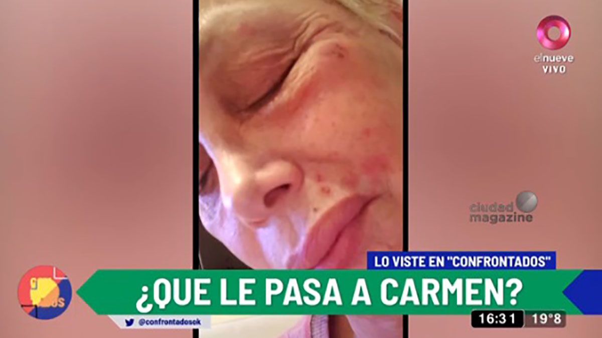 Carmen Barbieri está sufriendo las consecuencias de un herpes zóster, conocido vulgarmente como "culebrilla". Según dio a conocer ella misma en el programa "Confrontados", su cara quedó totalmente deformada. Las impactantes imágenes fueron compartidas en el ciclo de El Nueve, donde todo el equipo se mostró preocupado.