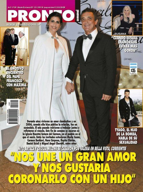 Pronto trae al casamiento más esperado, el de Cecilia Milone y Nito Artaza. También en tapa están el hijo de la Bomba Tucumana, Susana y Maxima con el Papa.