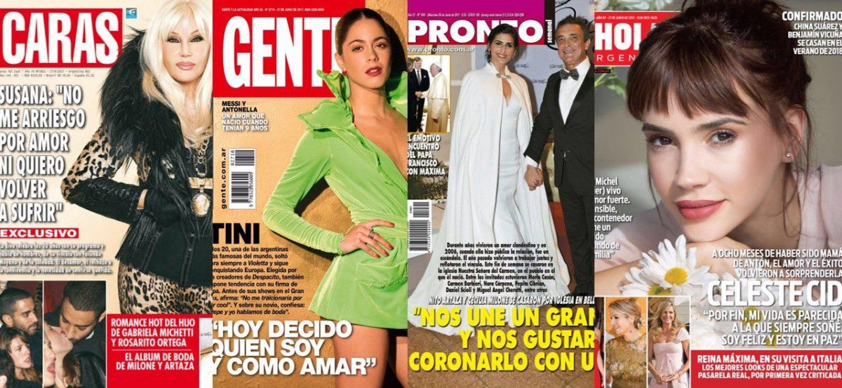 Susana en Caras se niega al amor; Tini Stoessel en Gente; Nito y Milone en Pronto; y Celeste Cid en Hola