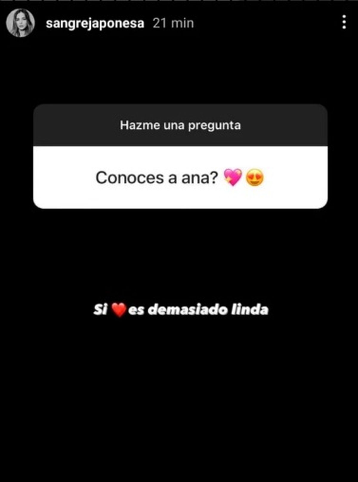 La China le dedicó un corazón, un osito, un moño y un angelito en la red social. Ante eso, los seguidores de La China quisieron saber: “¿Conocés a Ana?”, le preguntó un usuario y ella le contestó: “Sí, es demasiado linda”, comentó Suárez quien estuvo enfrentada con Carolina durante un tiempo tras la separación de Vicuña.