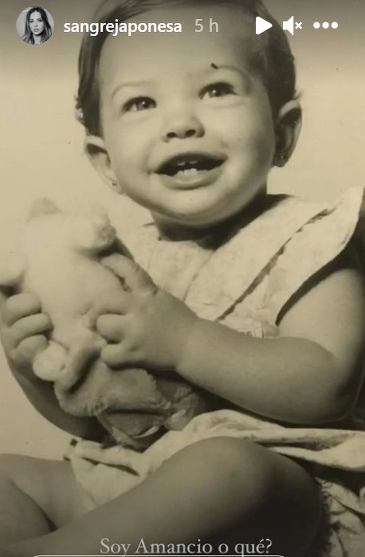 Esta vez la China compartió una foto de ella cuando tenía la misma edad que su hijo menor, Amancio, que cumplió un año hace poco. En la instantánea en blanco y negro aparece la actriz sonriendo con un muñeco de peluche entre sus manos.