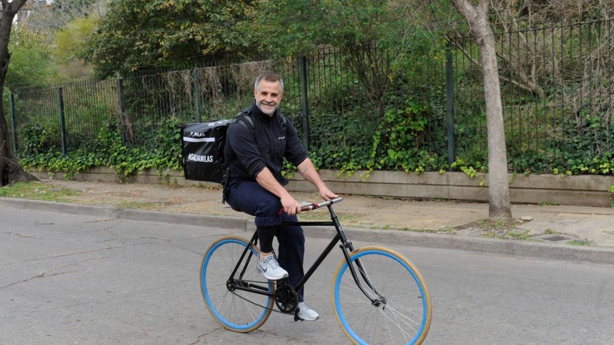 Pero, Petersen no solo está involucrado en el proceso de producción de las milanesas, él mismo hace entregas a domicilio en su bicicleta.