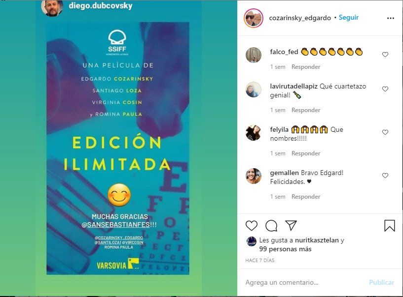A pesar de la pandemia de coronavirus, desde el próximo 18 y hasta el 26 de septiembre, se realizará una nueva edición del Festival de Cine de San Sebastián. Y en la sección Horizontes Latinos, se estrenará internacionalmente la película argentina Edición Ilimitada, cinta que reúne los trabajos de cuatro directores: Edgardo Cozarinsky, Santiago Loza, Virginia Cosin y Romina Paula.
