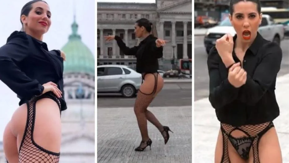 "Se dice que soy hueca que el puesto no me merezco que mi culo es lo que ofrezco y nada tengo pa' decir", comienza la letra que canta Cinthia Fernández, bailando tango en la vereda de la plaza de los dos congresos, frente al edificio en el que pretende comenzar a trabajar en pocos meses.