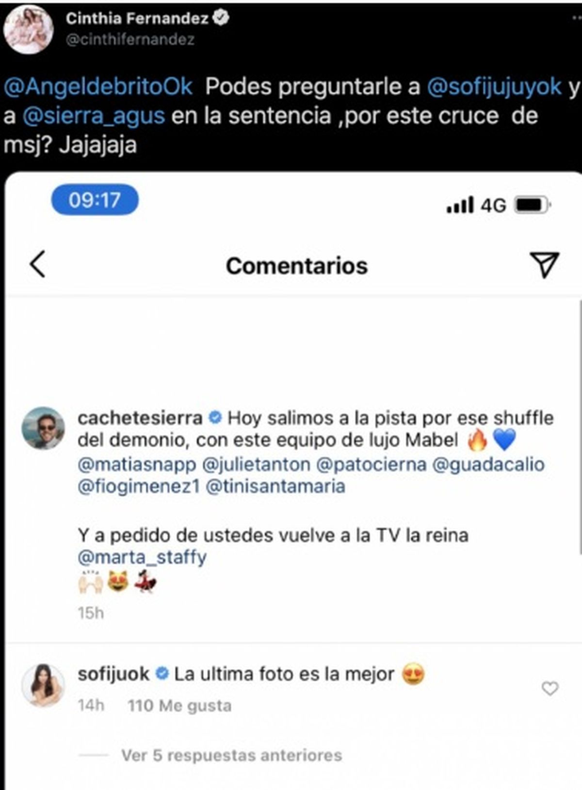 "¿Podés preguntarle a Jujuy y a Agustín en la sentencia por este cruce de mensajes? Ja, ja, ja", le pidió, pícara, compartiendo el capture del comentario que le hizo Sofía a Cachete en una publicación que hizo en Instagram.