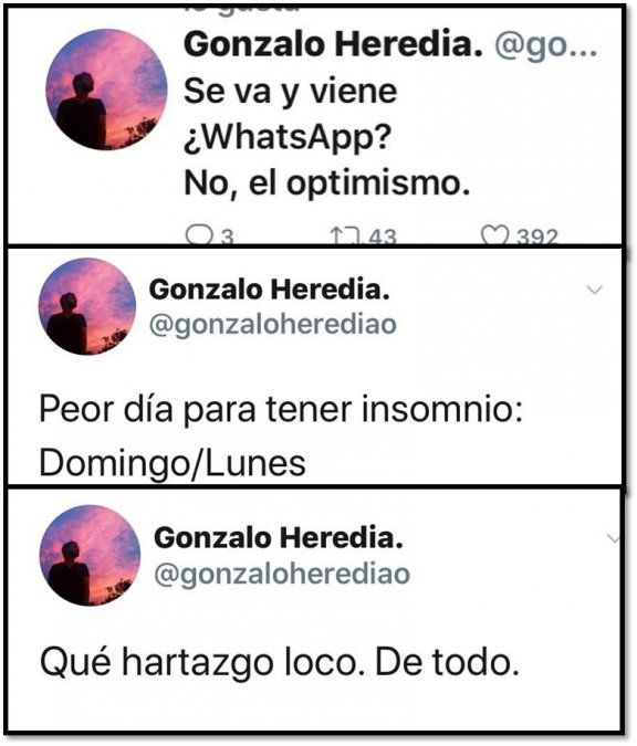 Gonzalo Heredia está harto de estar guardado y hace catarsis en Twitter con breves reflexiones, pero según lo que twittea a Heredia se lo ve muy para abajo.