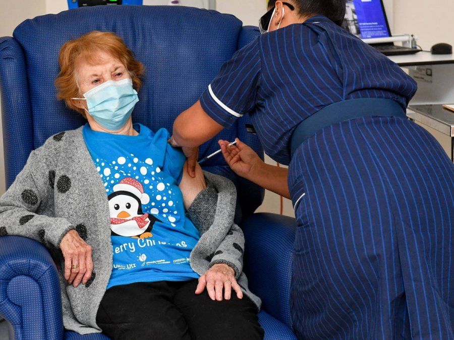 La vacuna consiguió un 95 por ciento de eficacia en los ensayos, y Margaret Keenan, una británica de 90 años, se convirtió en la primera paciente del mundo en recibir la vacuna contra el Covid-19 desarrollada por la alianza de las empresas estadounidense y alemana, dentro de una campaña que se augura larga y logísticamente complicada.