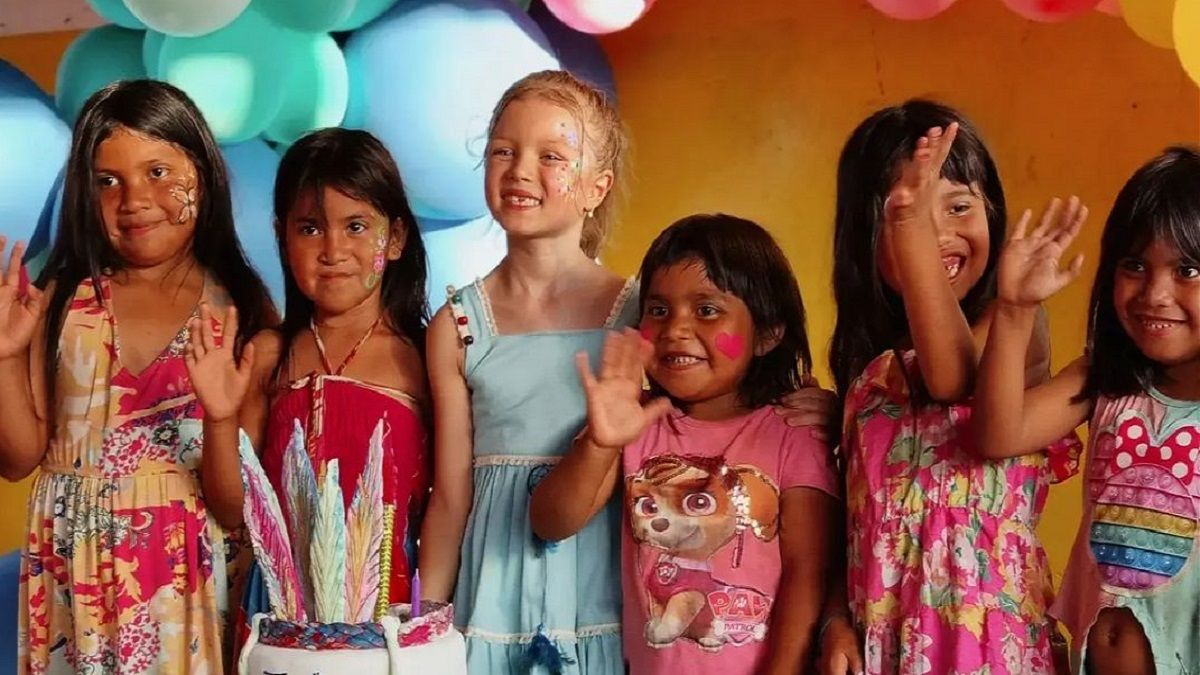 En las postales publicadas en la red social de la camarita, se ve cómo la pequeña compartió su festejo con niños indígenas.