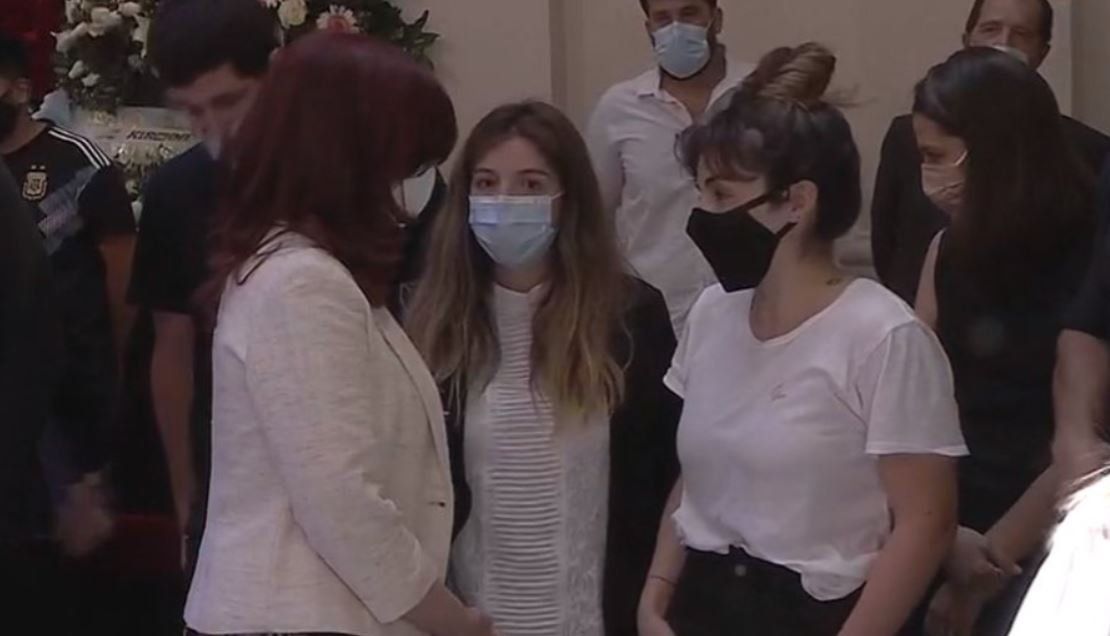 Alrededor de las 15 llegó Cristina Fernández de Kirchner a despedir a Maradona, parece que Dalma y Gianinna no la quisieron abrazar.