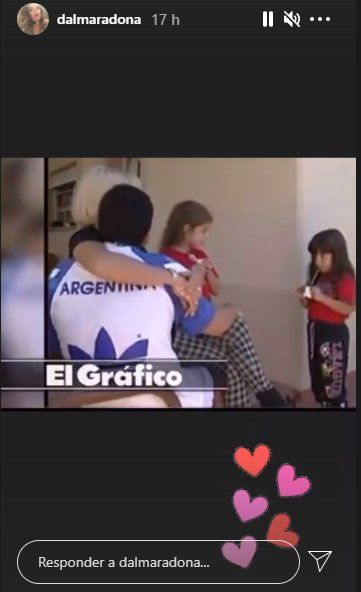 Esto fue lo que escribió Dalma en sus Instagram stories: “¡Ayer en la lupita me apareció un video de mi papá con mi mamá a upa donde cantábamos los cuatro! Ellos están de espaldas y Giani mini tomando mate... (¡creo que era del 94′, pero no estoy segura!). ¡Lo quiero tener! ¿¿¿Me ayudan??? Otro datazo: ¡Giani y papá arrancan cantando Cristian Castro y después me sumo yo con otro tema! ¡Sale ayuda! Cuando lo busqué para guardármelo, no lo encontré más”.