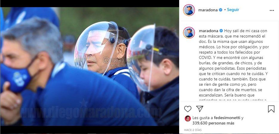 El doctor Leopoldo Luque, médico personal de Diego Maradona explicó: “El contacto que Diego tuvo con el delantero fue al aire libre, con barbijo correctamente colocado y nunca estuvo por un período mayor a los 15 minutos en un contacto directo con Contín".