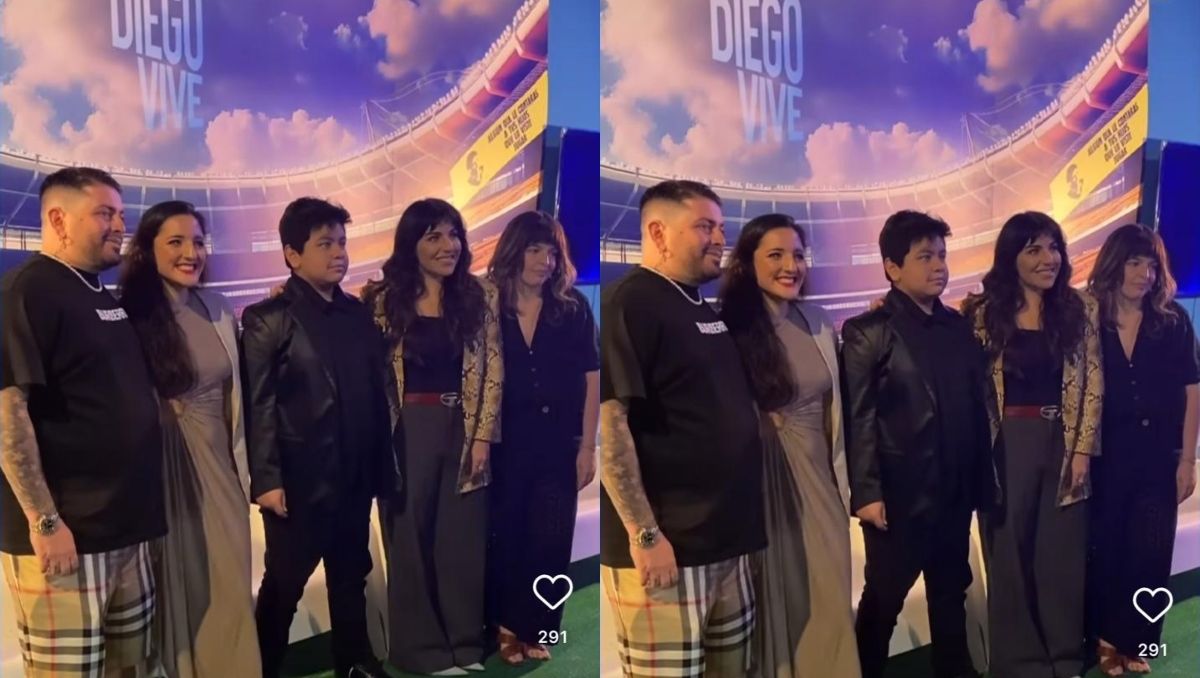 En la imagen se ve a los cinco hijos de Diego Maradona sonriendo y ordenados de la siguiente manera de izquierda a derecha: Diego Maradona Sinagra, Jana Maradona, Diego Fernando Maradona, Gianinna Maradona y Dalma Maradona.