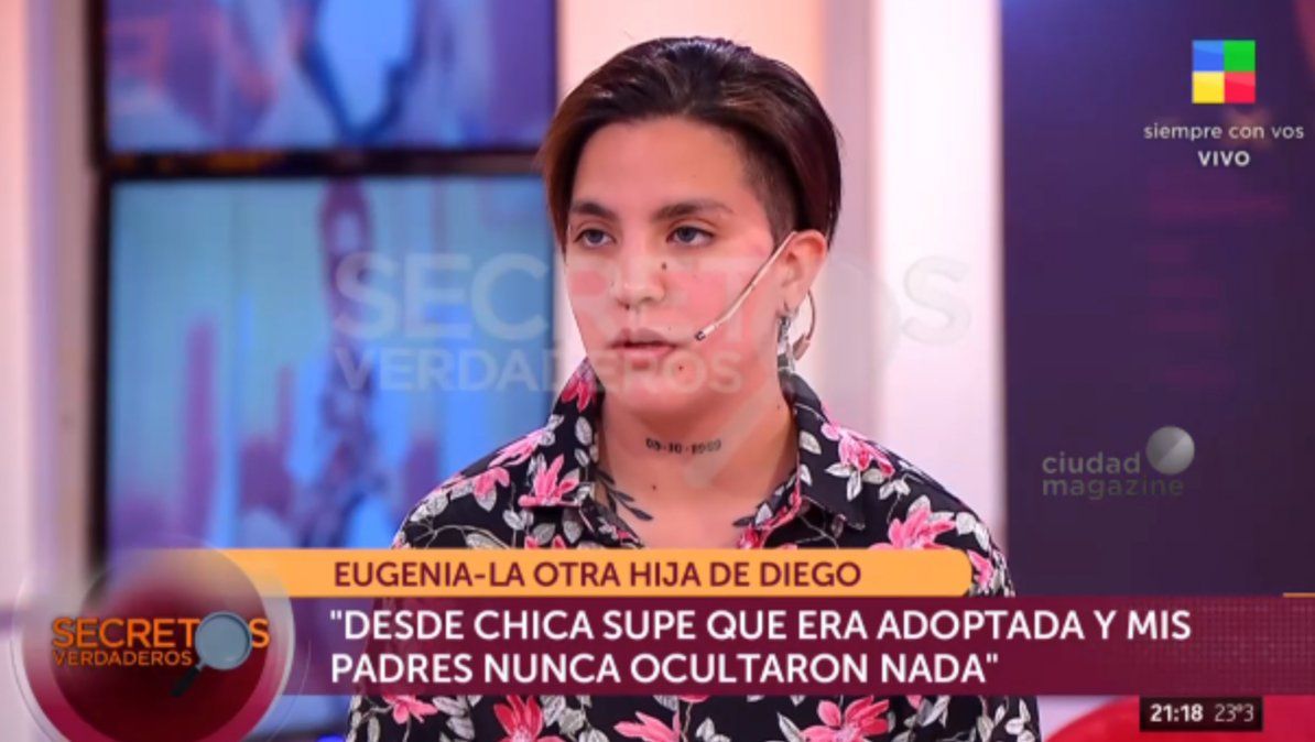 En Secretos Verdaderos, programa conducido por Luis Ventura, Eugenia Laprovittola contó que gracias a los medios de comunicación fue que se dio cuenta que podía ser hija de Diego Maradona.