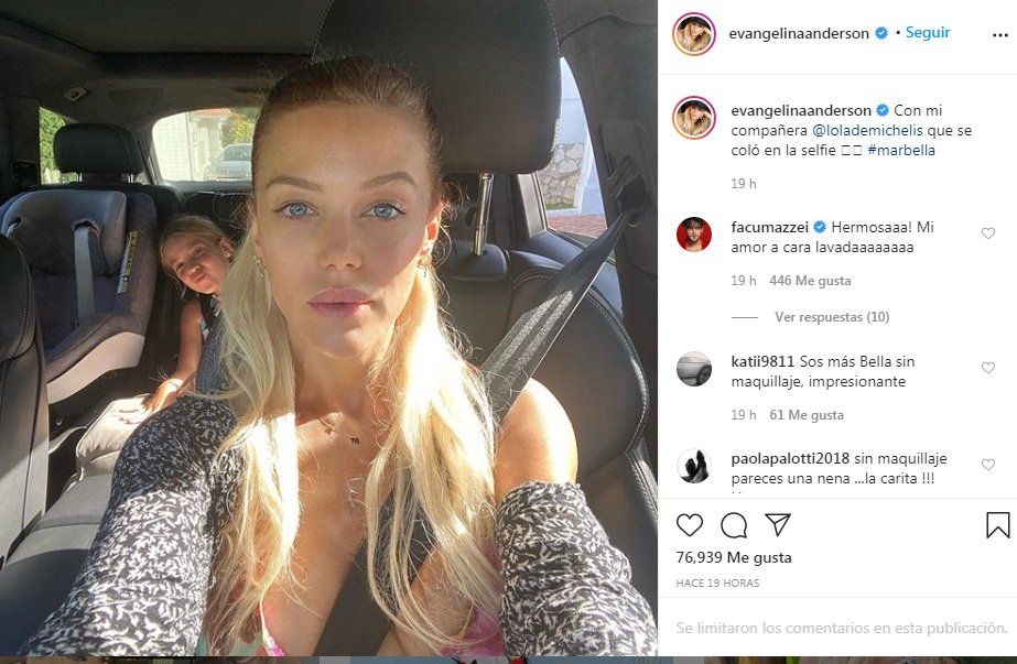 La modelo Evangelina Anderson, es una de las famosas más activas en redes sociales. Hace unas horas publicó para sus 2 millones de seguidores en Instagram, una imagen que recibió cientos de halagos. En la postal aparece sin un toque de maquillaje y deslumbra su belleza.