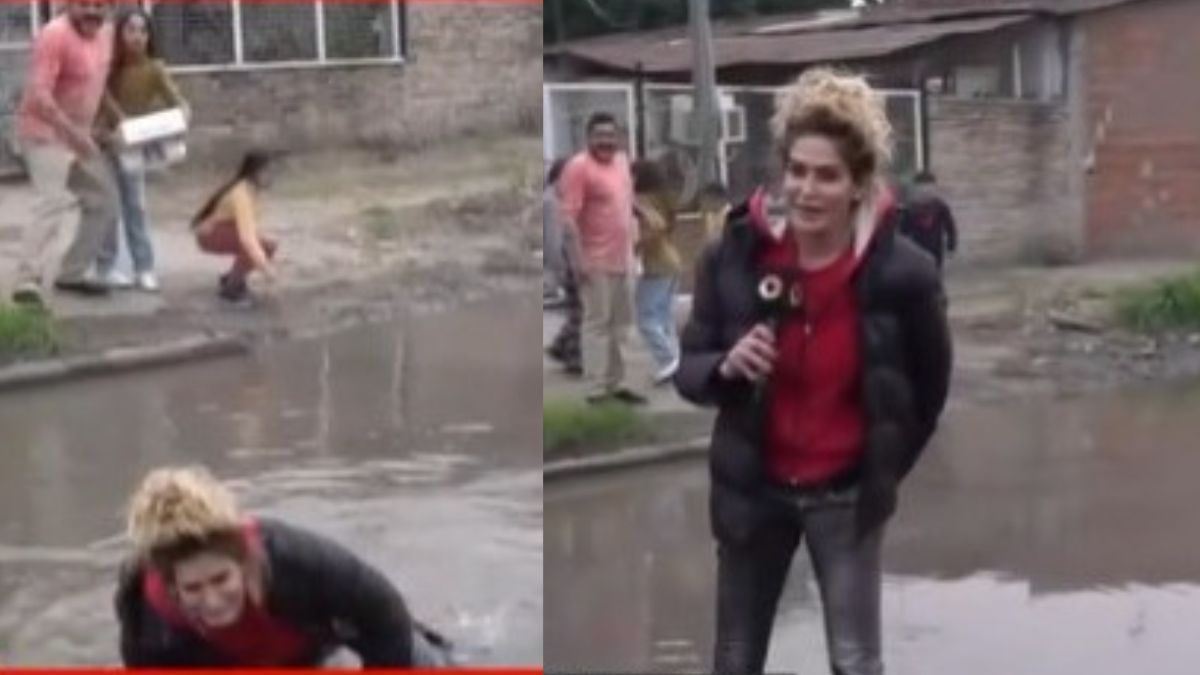 Todo ocurrió en José C. Paz, cuando Guilana Salguero, la movilera de "Momento D" mostraba las calles que estaban inundadas. Mientras hablaba en plena transmisión, se topó con un pozo que provocó su caída. Por suerte, no resultó lastimada y confirmó que "está todo bien".