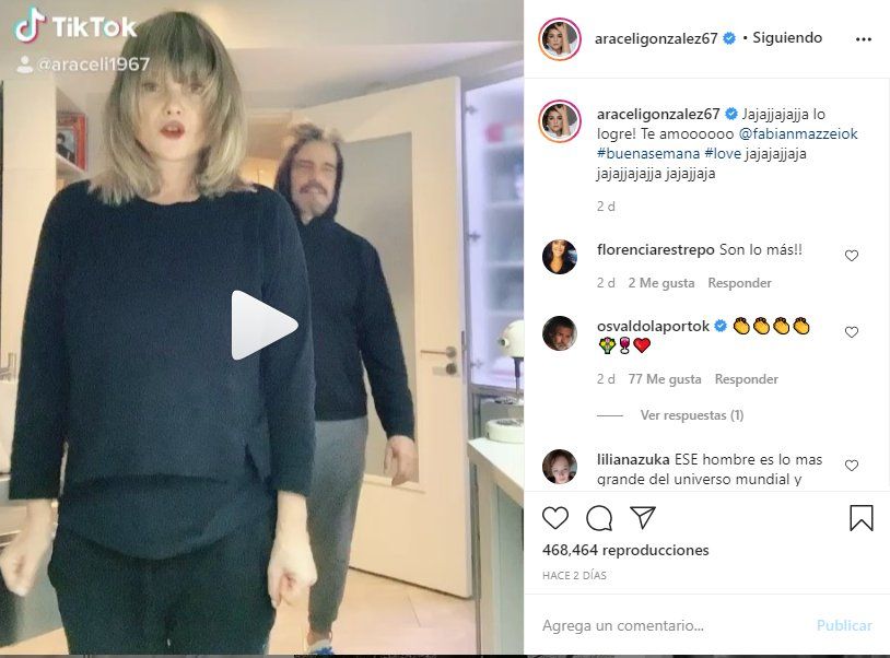 Todo esto resultó un triunfo para la actriz Araceli González, quien manifestaba que deseaba jugar con Fabián Mazzei en esta plataforma digital. En definitiva, estos días, la ex modelo y también actriz compartió con todos sus seguidores en el mundo su victoria y lo hizo con un video, corto e intenso, en el que aparecen los dos miembros de la pareja bailando un tema de Farruko, en la cocina del hogar.