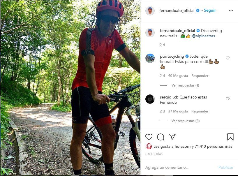 El ex bicampeón mundial de F1 (2005, 2006) ha compartido una foto en su cuenta de Instagram que dejó boquiabiertos a sus seguidores. “Descubriendo nuevos senderos”, escribió el español, quien dejó la categoría reina en 2018.