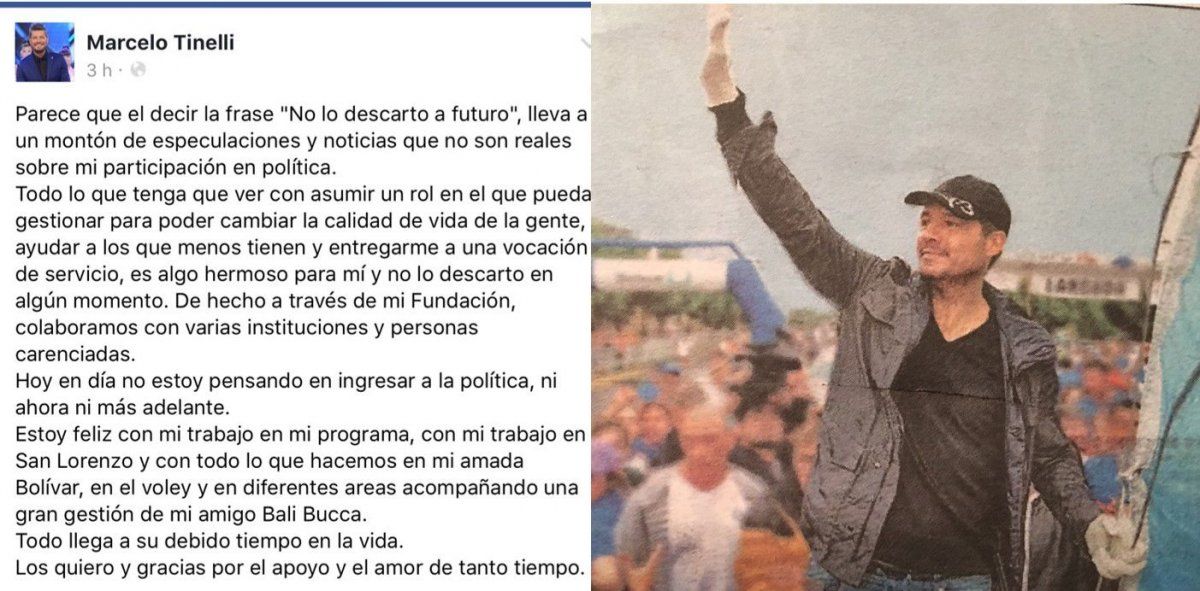 Según la nota que despertó la desmentida inmediata de Tinelli en su Facebook, "El conductor repite que ya queda poco por hacer en televisión", y que en su entorno lo comparan con el fenómeno de Trump como un `outsider´que puede llegar a la Presidencia.