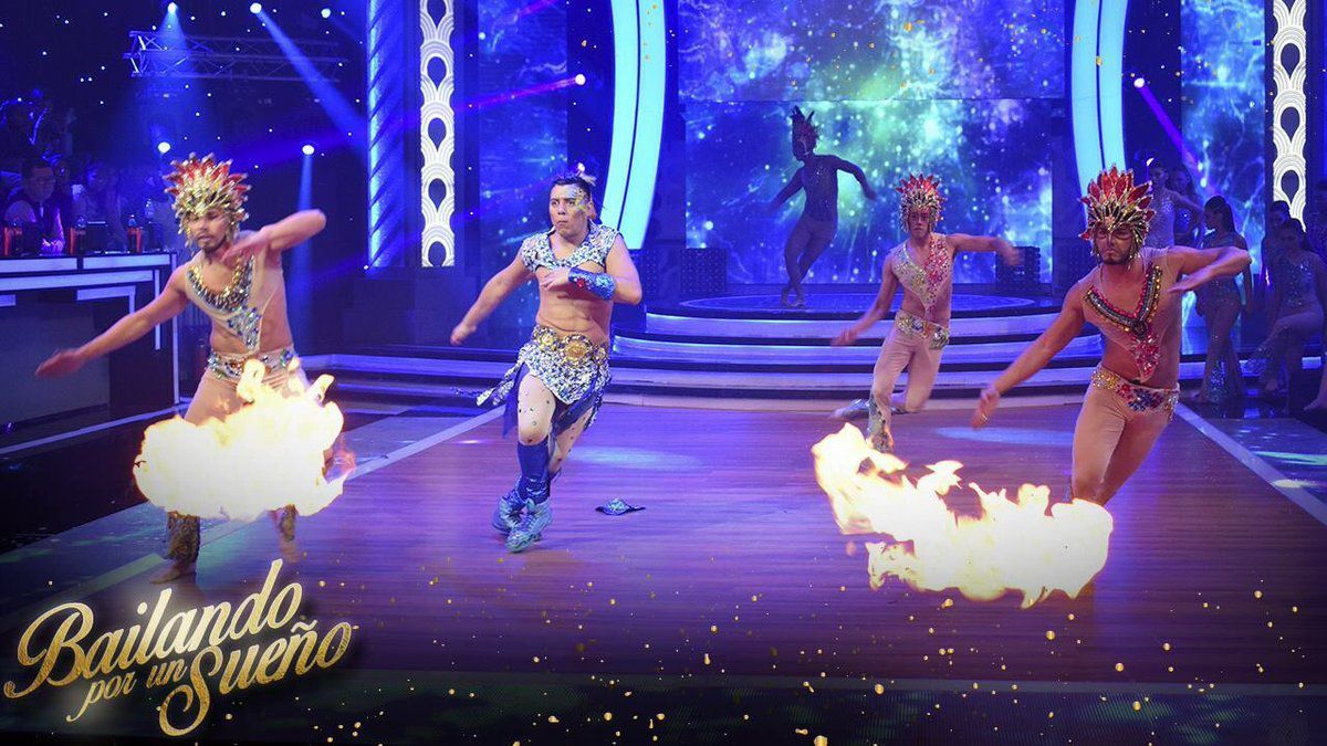 Luego de interpretar a Moria, cual Flavio Mendoza hizo un baile en el que lució su torso desnudo con abdominales marcados -o maquillados- rodeado de bailarines y trucos con fuego.