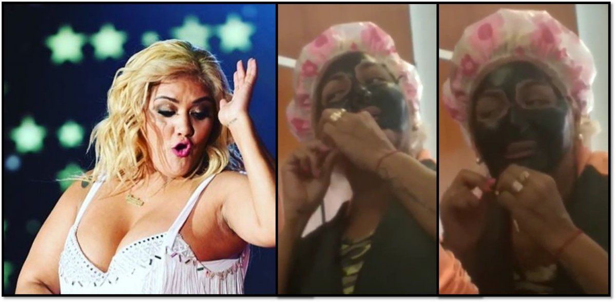Frente a un espejo y con una toca en la cabeza, una especie de gorra de baño, y junto a alguien que la filmaba y se reía a carcajadas, Tucumana trataba de quitarse la máscara pero no lo pudo conseguir, al menos durante el video.