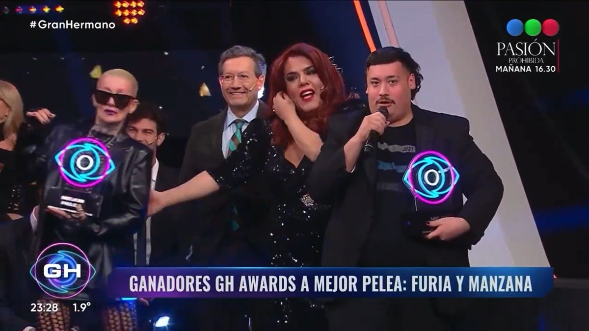 Minutos antes de esto, Santiago del Moro reveló que el rating de la temporada del ciclo fue de 17.2 puntos, y Furia de Gran Hermano, en su discurso de aceptación, se adjudicó el número, diciendo que merecía el premio por el rating y no por la pelea.