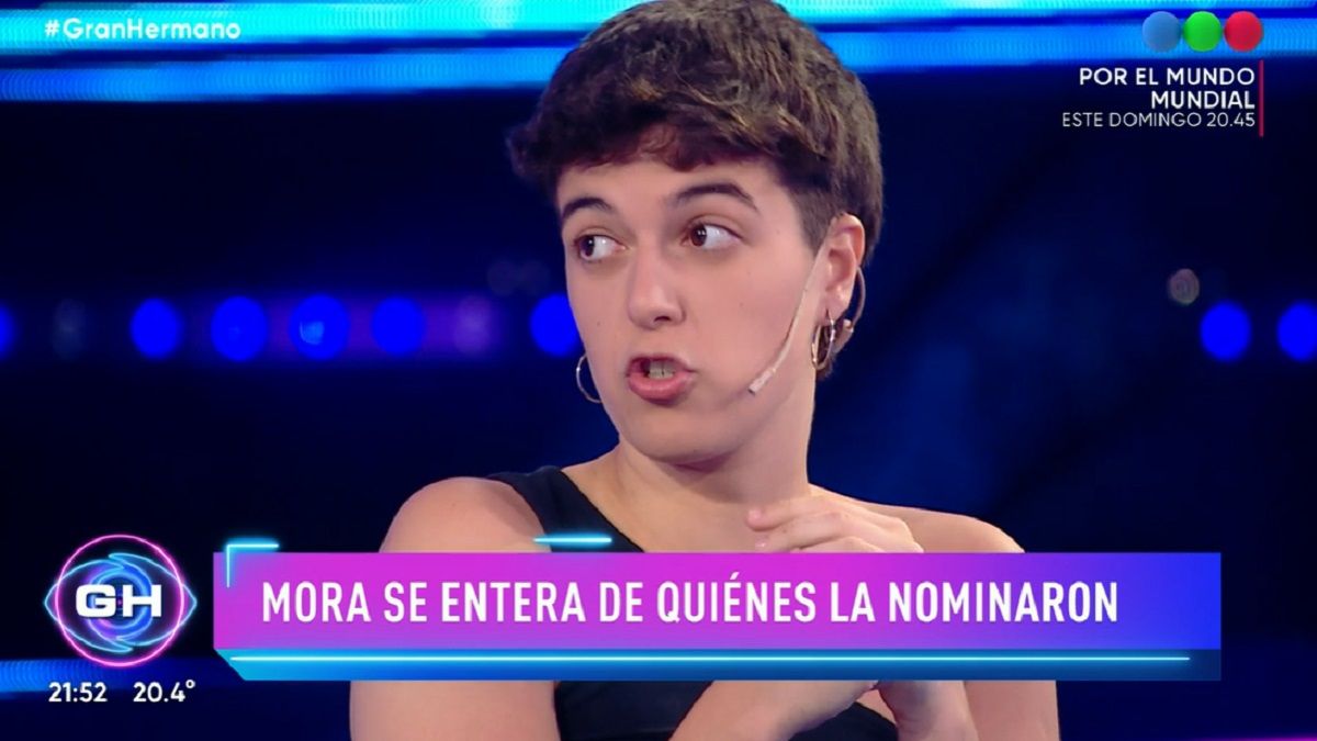 Este lunes, Mora, última eliminada de "Gran Hermano", estuvo en el debate que conduce Santiago del Moro en Telefe. Allí, vio por primera vez las imágenes de quiénes votaron en su contra en la gala de nominación.