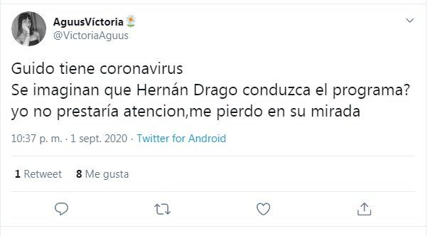 En Twitter se dejaron ver mensajes como: "Guido Kaczka tiene covid???? ALGUIEN PUEDE PENSAR EN HERNAN DRAGO?!@, "llego tu momento Hernán Drago", "Que venga Hernan Drago por favor", fueron algunos de los tweets que dejaron las fans de Drago en la red del pajarito.