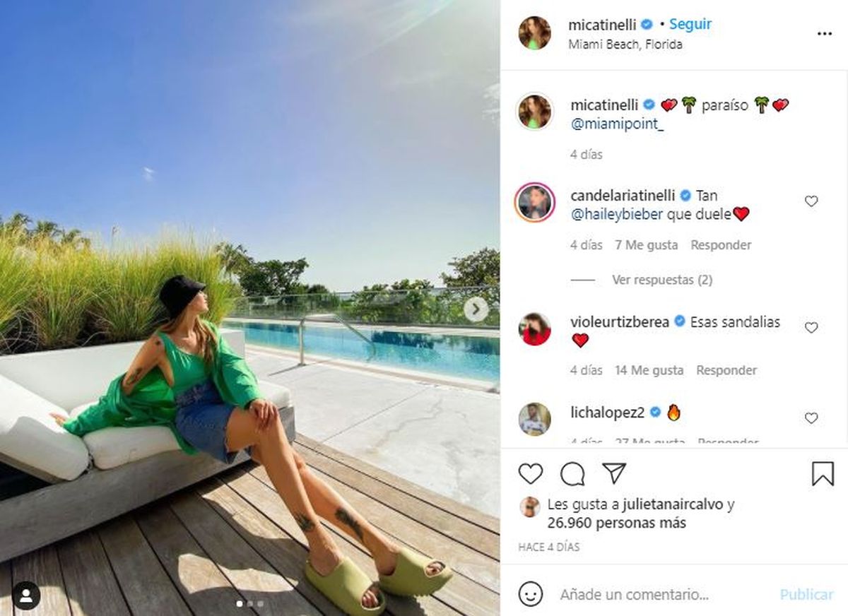 Entre tanto en el muro de Micaela Tinelli, muchos usuarios se mostraron en desacuerdo con la opinión de la diseñadora por el hisopado. Por ejemplo un usuario le escribió a la hija de Marcelo: “Andate de nuevo a Miami. Si sos tan sorry y no te gusta, ¿para qué viajas?”. A lo que la empresaria contestó: “El pensamiento más básico sería éste”.