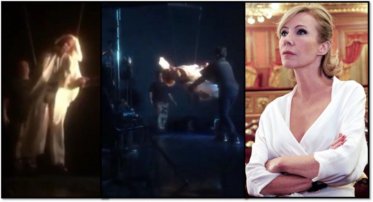 La propia Inés Estévez posteo en su cuenta de Instagram un video en el que se puede ver a la actriz volar por los aires en lo que fue la grabación de la muerte de su personaje.