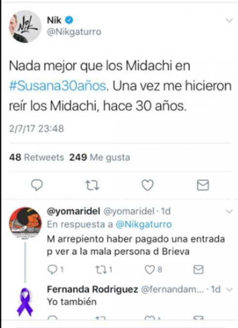 Y va por mas opina de los programas y los invitados de Mirtha Legrand y Susana Giménez y hasta se mete con los Midachi, un audaz, eso si, no los arroba, asi que sólo se enteran sus seguidores y nosotros obviamente. "Guillermo Coppola en #LaNocheDeML dándonos consejos de cómo comportarse en la vida. Listo. Cerrame la 4" y va por Susana y trío más famoso "Nada mejor que los Midachi en #Susana30años. Una vez me hicieron reír los Midachi, hace 30 años"