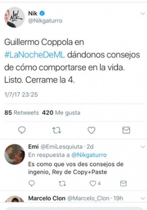 Como se ve Nik está decidido a destruir a nuestra farandula desde sus redes y tal vez algún día sentarse en un panel de televisión para desplegar desde ahí todas sus ácidas opiniones.
