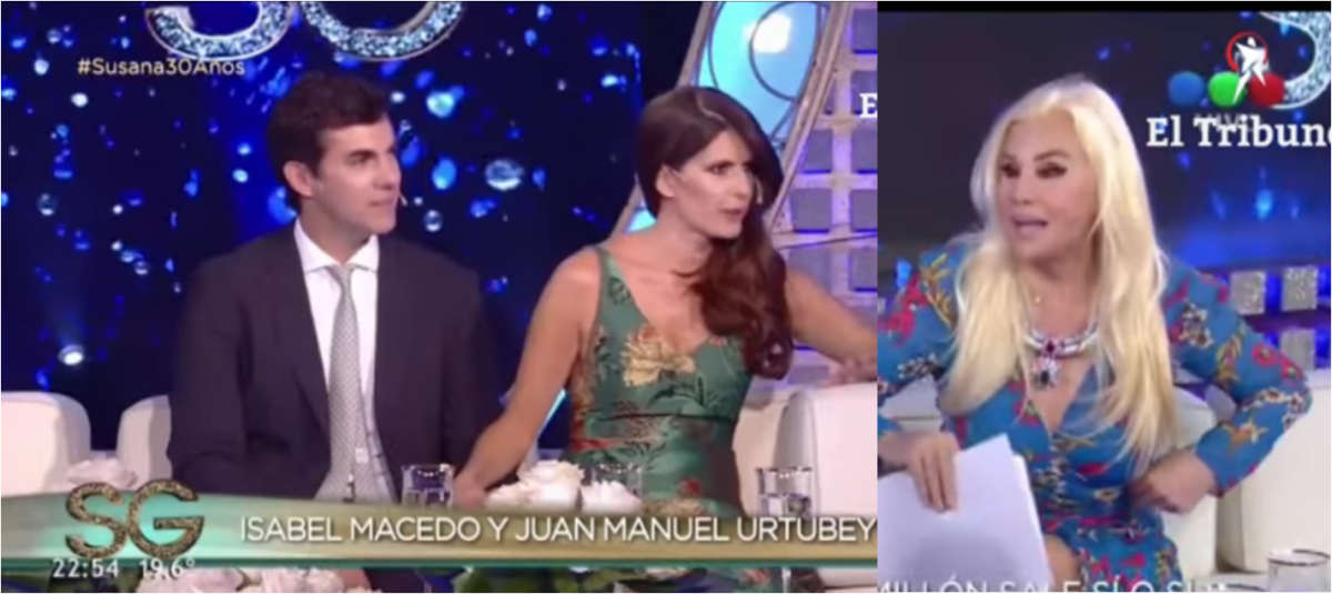 Susana Giménez tenía en su living de invitados a Isabel Macedo y Juan Manuel Urtubey. Era la entrevista soñada. La feliz pareja contaba cómo era su vida en Salta, Urtubey relataba su actividad política, y Macedo cómo hacía para seguir su carrera artísitca, radicada ya definitivamente en Salta, provincia de la que su marido es el gobernador.