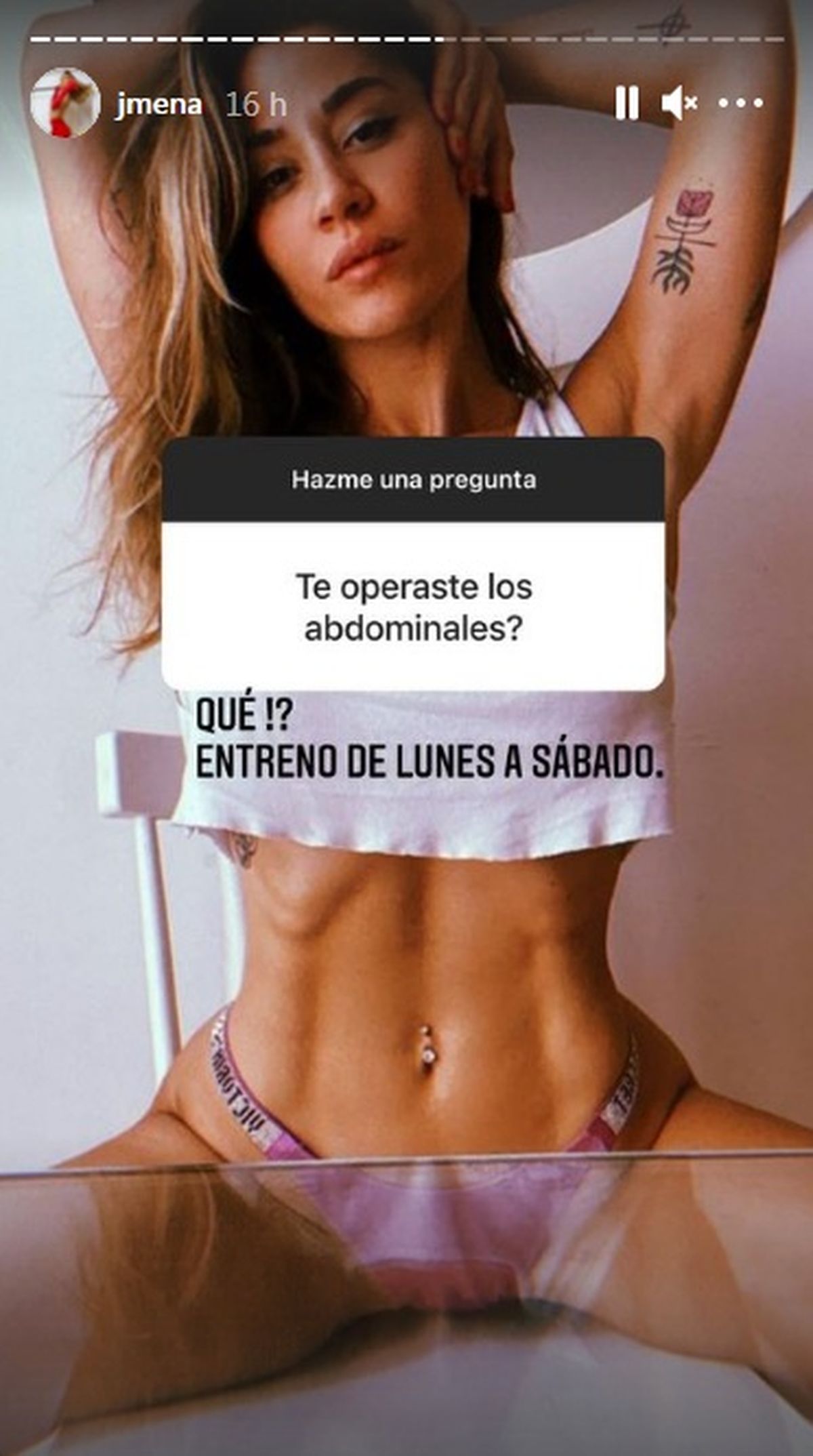 "¿Te operaste los abdominales?", fue la consulta y Jimena respondió junto a una imagen de su abdomen: "¡¿Qué?! Entreno de lunes a sábados", expresó dejando claro que su figura tiene que ver con su constancia en el ejercicio. Además reveló que "le sobran" ganas de entrenar.