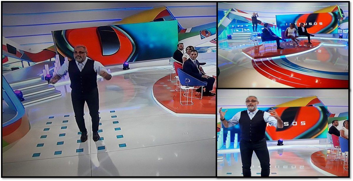 Intrusos el programa emblemático de América tv renovó totalmente su escenografía. Jorge Rial el conductor del programa agradeció a toda la técnica del canal y especialmente a un nuevo artista plástico llamado Romero Escalada que intervino la escenografía.