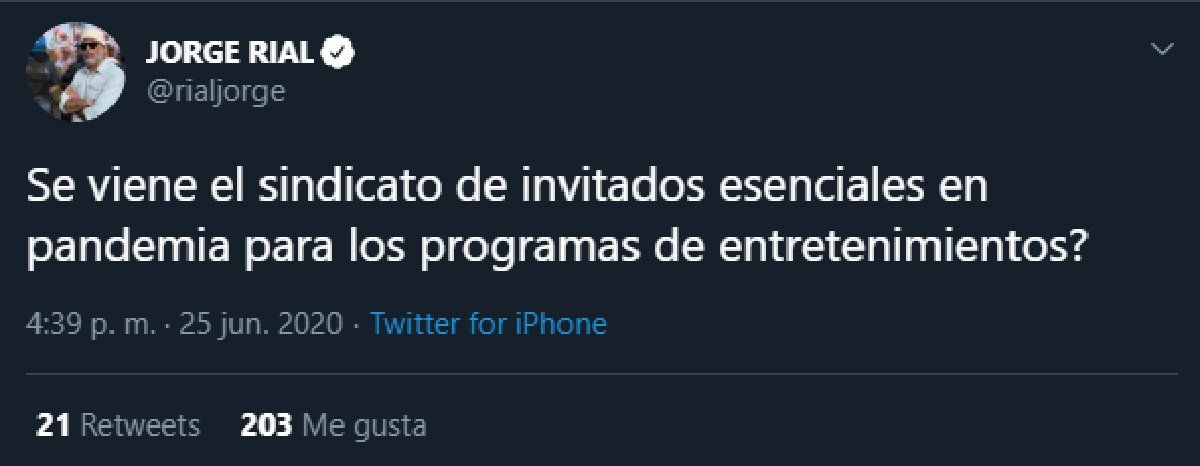 Jorge Rial utilizó sus redes sociales para atacar, con ironía, a los programas de entretenimiento. El periodista arremetió contra sus colegas, en vista de que la mayoría de estos espacios continúan llevando invitados en forma presencial, pese a la recomendación del ENACOM de no hacerlo, para evitar la propagación del Covid-19.