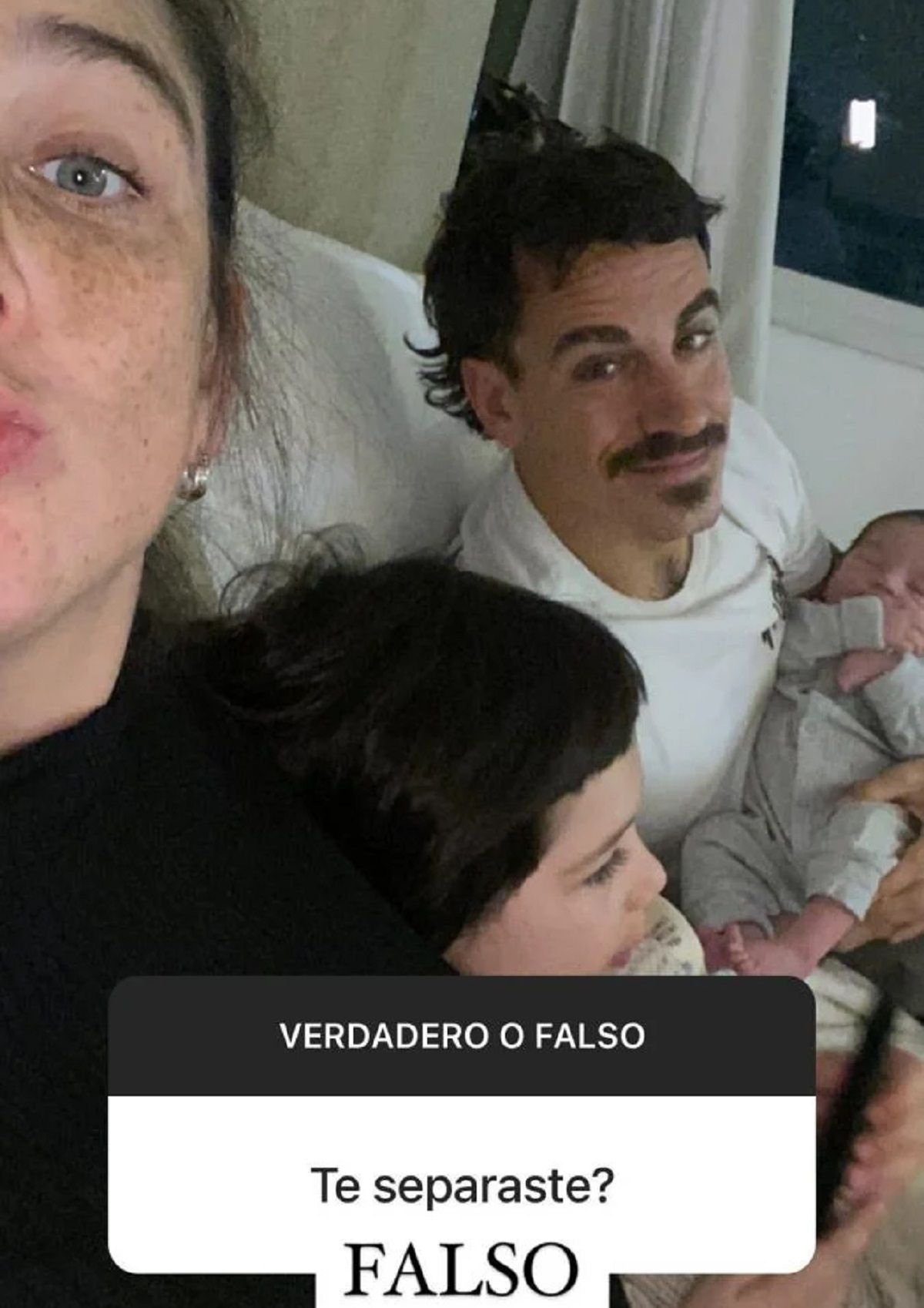 En este sentido, Juana Repetto respondió las preguntas de sus seguidores en Instagram, y cuando le preguntaron “¿Te separaste?”, ella fue tajante, respondiendo: “FALSO”. Y además, subió una foto en la que se puede ver a toda la familia, la actriz con su marido y los dos nenes de la casa.